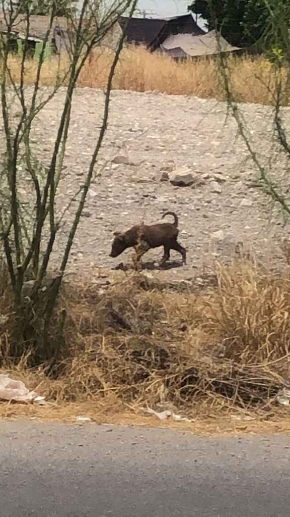 Osa y Nina las rescatamos cerca del canal de riego el Sacramento, entre la basura y hierbas, con temperaturas arriba de 30C, con el riesgo de irse al canal o a la carretera.